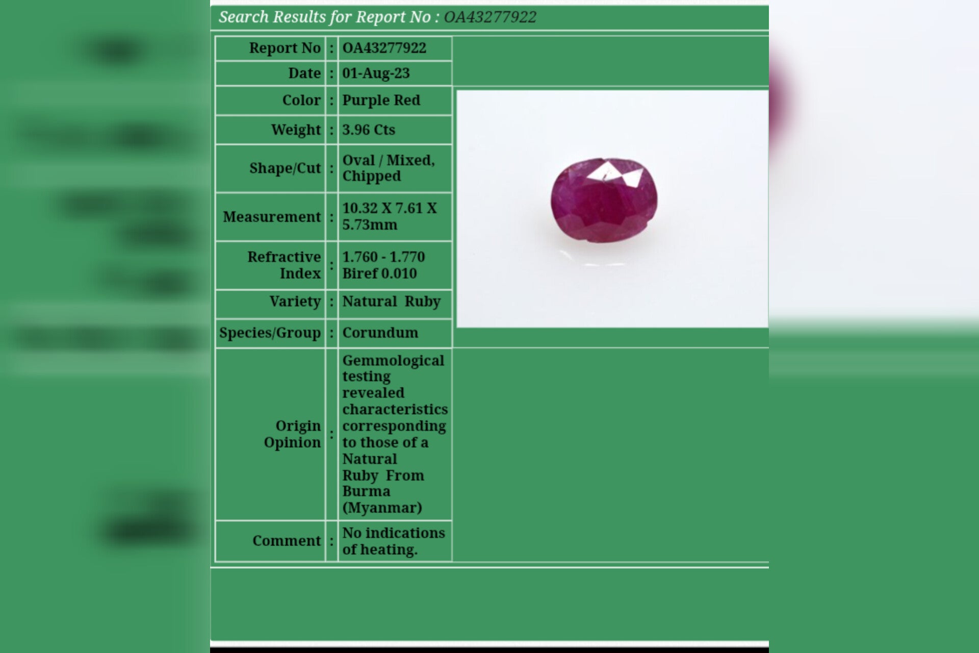 Experience the timeless allure of this Natural Ruby from Burma (Myanmar), admired for its vivid red hue and exceptional origin pedigree. Sourced from the world-renowned Mogok mines, this ruby displays the deeply saturated crimson tone that Burmese rubies are famous for — a color long associated with passion, vitality, and prosperity.