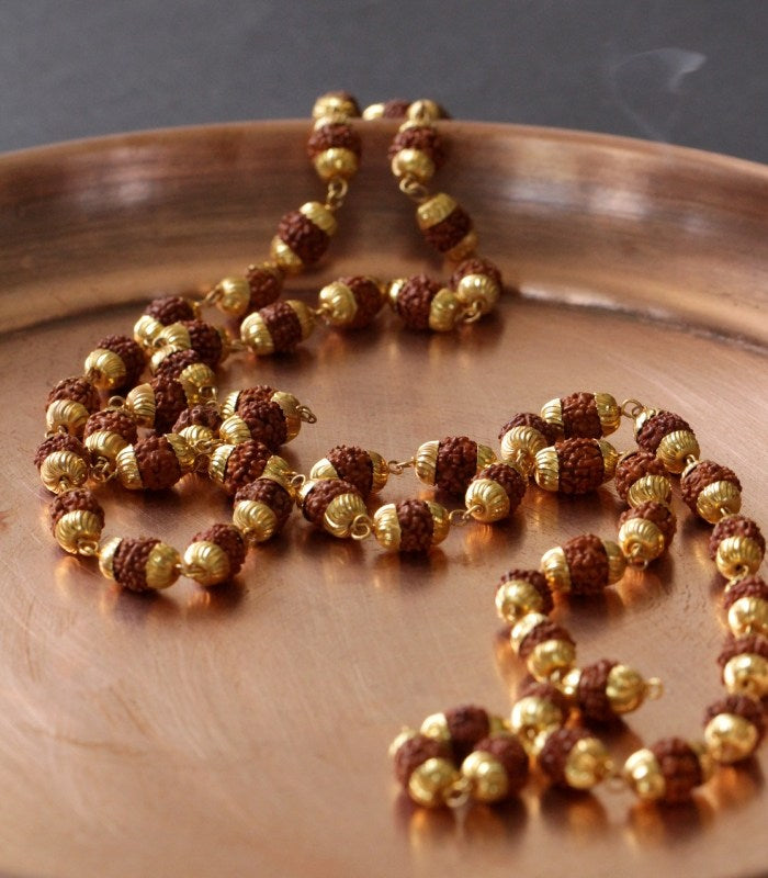 Coming direct from Pashupathinath in Nepal, this Rudraksha rosary is set in beautifully hand-crafted golden mettle is enlightened by astrologers, to spread positive vibes.